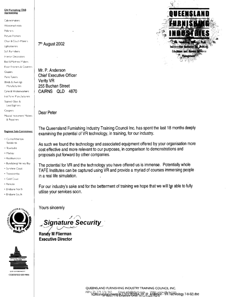 Randy Flierman, Executive Director, Queensland Furnishing Industries Training Council Incorporated.