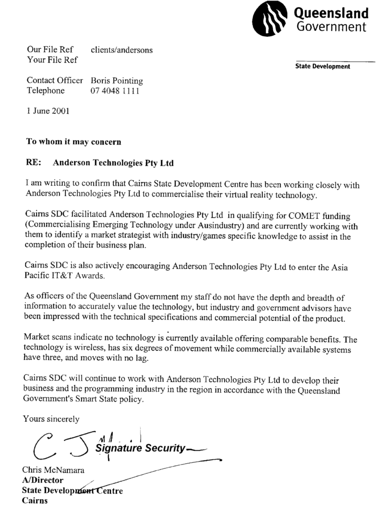 The Asia-Pacific IT&T Awards web site details the winners from 2001. The parent company Anderson Technologies Pty Ltd is listed as the winner of the “Best IT Innovation – Games” award for the Queensland region.
